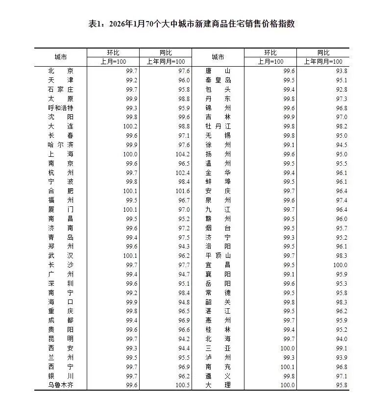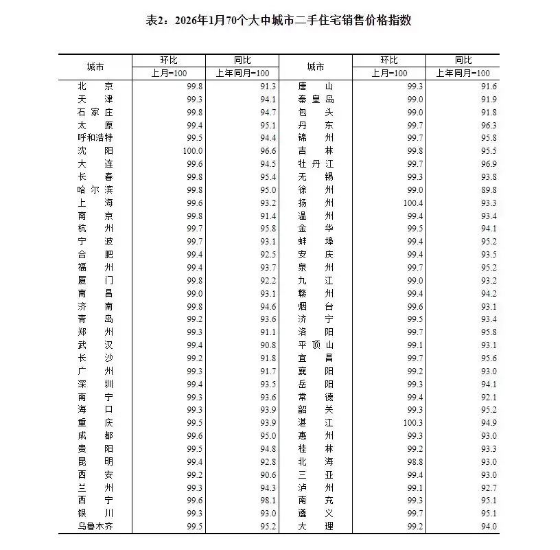 2月13日格隆汇报道|北京1月份新建商品住宅价格环比下降0.3%,较上月0.4%的降幅略有收窄;同比涨幅为2.4%,与上月持平。二手房市场方面,1月价格环比下跌0.2%,较上月1.3%的跌幅明显减缓;同比下降8.7%,降幅较上月的8.5%略有扩大。