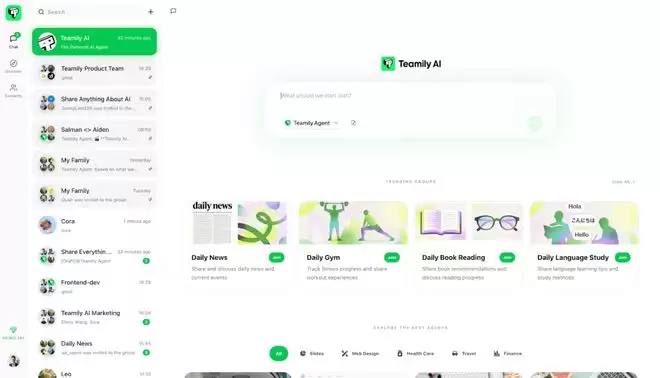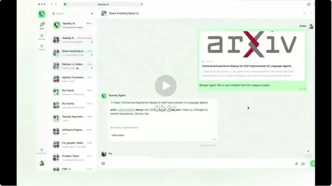 社区:如果你是一个 AI 爱好者社区,那么可以在 Teamily AI 上找到一个热衷于学习 AI 的社区。有人分享了新的 YouTube 视频、推文或 arXiv 论文时,AI 会分析视频和论文,为小组提炼核心摘要,而小组成员可以随着接着提问、分享见解,不管是多么深奥的科研课题,多么密集的科研材料,它够能将其变成一种简单易懂的内容,并让大家感受到协作式的学习体验。