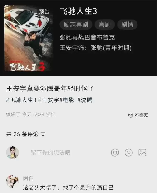 当时,大家都觉得是玩笑话,可谁能想到,一句随口说说的话竟真的在《飞驰人生3》里变成了现实,这种综艺梗变成现实的操作,比嗑CP还让人着迷,实在是太棒了。