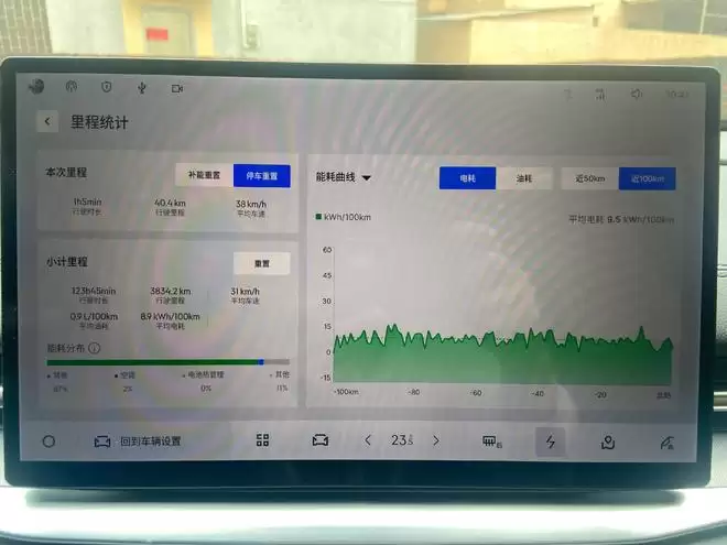 开了一个多小时,他查看能耗表发现,整车的平均电耗也就9.5kWh/100km,平常开车只用充电,用不着加油,折合下来一公里不到一毛钱。