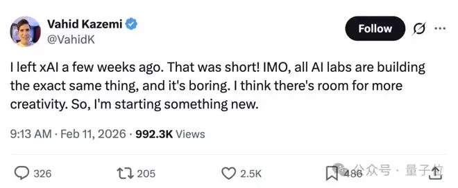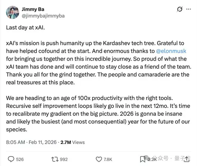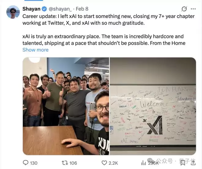 “我从xAI离职了,将开启人生的新篇章”“xAI的最后一天,我们正在迈向新的时代”。
