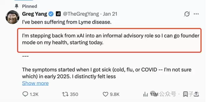 他在声明中表示,自己可能早已感染莱姆病,但在xAI创立初期长期高强度工作、过度透支身体,导致免疫系统受损,最终让病情显现并加重。