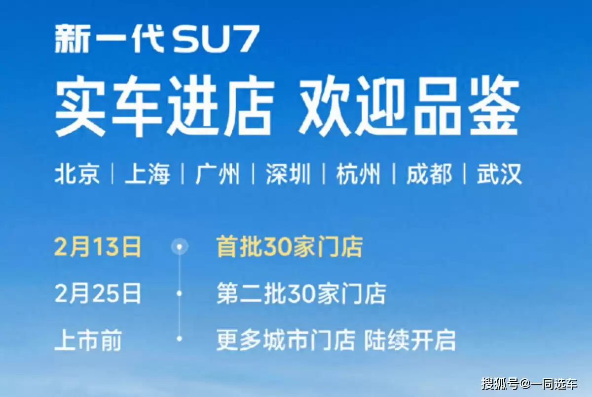 新一代小米SU7展车已陆续运抵全国各地门店,首批覆盖北京、上海、广州、深圳、杭州、成都、武汉等30座城市。消费者可在春节期间前往实体店亲身体验。第二批30家门店的展车将于2月25日到位,进一步扩大展示范围。