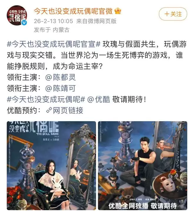 《今天也没变成玩偶呢》影视化项目今天正式官宣,看过原著的朋友们对演员阵容是否贴合角色,心里应该都有了自己的判断。
