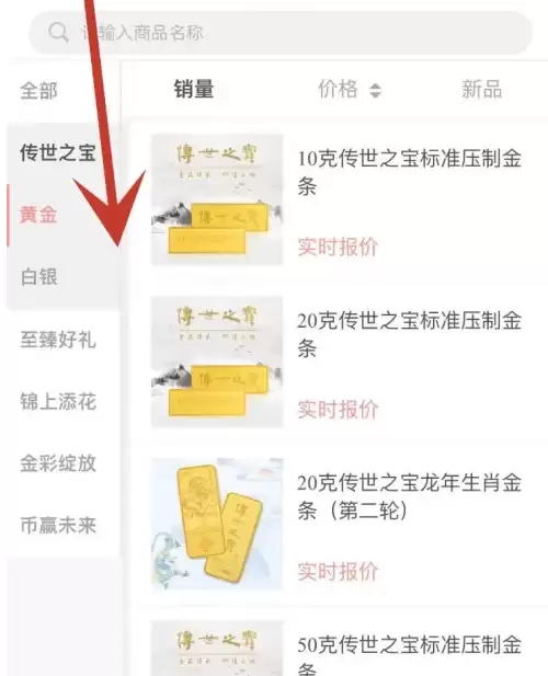 进入财富管理板块后,选择"实物贵金属"分类。