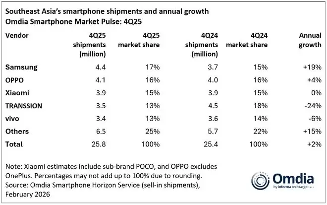 2025年东南亚市场分析:三星重返第一,小米国产领跑