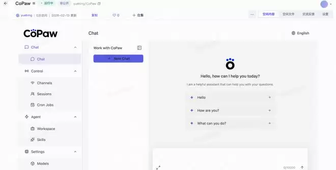 CoPaw 既是「你的搭档小爪子」(co-paw),也寓意 Co Personal Agent Workstation(协同个人智能体工作台)。它可以部署在用户本地或云端环境中,通过多频道与用户进行对话,按照配置定时执行任务;通过智能体 Skills 进行无限可能的能力扩展。