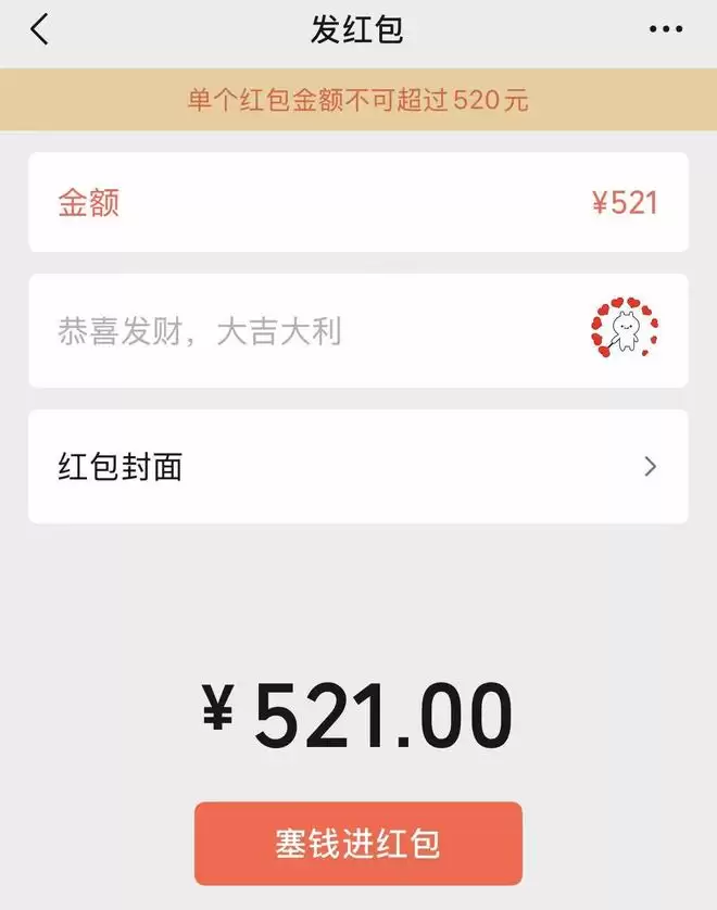 今天是2月14日情人节,微信延续往年惯例,再次开放520元限额红包。据了解,微信会在情人节、七夕节以及5月20日这三个特殊节日开放大额红包功能。