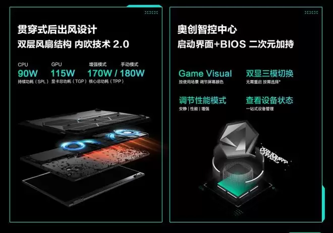 核心配置:固定搭载AMD锐龙9 8940HX处理器,16核心32线程,多核性能强劲,既能轻松支撑各类3A大作运行,也能适配游戏多开等场景;搭配RTX 5060(8GB)独立显卡、标配16GB DDR5 5200内存+1TB PCIe4.0硬盘。同时,还可在奥创智控中心调节独显输出模式、混合输出模式和集显模式,在NVIDIA控制面板中使用Advanced Optimus热切换,不同使用场景切换不同模式。