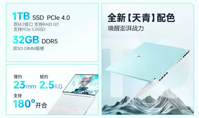 配备16英寸2.5K IPS电竞屏,165Hz高刷新率,虽然刷新率略低于同价位其他机型,但完全满足普通玩家的游戏需求,画面流畅无拖影,色彩表现细腻,能精准呈现游戏中的细节场景;机身配备天选姬定制RGB键盘,同时支持单键RGB背光自定义,可根据游戏场景调节背光颜色,氛围感拉满。