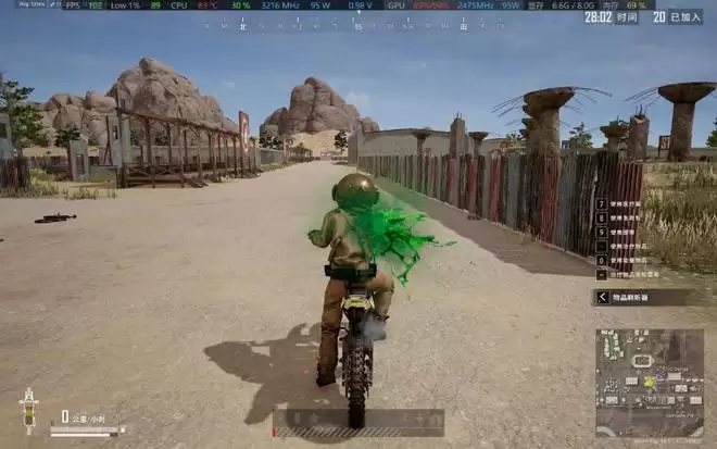 《PUBG》采用的是训练模式跑图,8060S能跑100fps上下,RTX 5060游戏本的平均帧速是129fps,从游戏中截图大家可以看到,GPU占用率比在3A游戏中稍低一些,所以CPU的频率达到了3GHz以上。