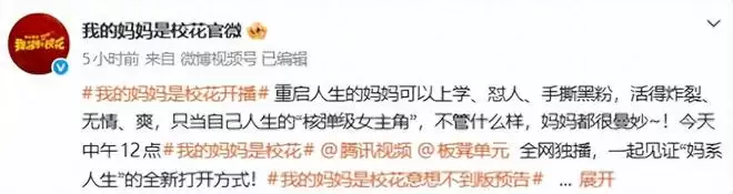 跨界打造了首部长剧集《我的妈妈是校花》,刚开播就把国产喜剧的全新打开方式搬上荧幕。