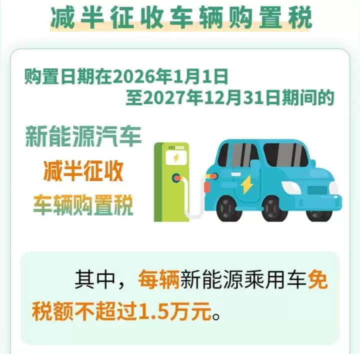 自2026年1月1日起,实施了多年的新能源汽车购置税“免征”政策正式退场,取而代之的是“减半征收”,并设置了1.5万元的减免上限。同时,享受税收优惠的插电混动车型的纯电续航门槛也从43公里提升至100公里。