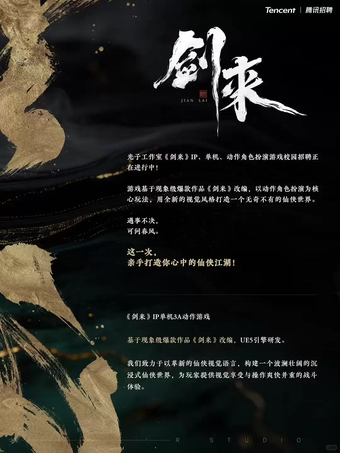 2月14日消息,腾讯光子工作室群旗下的光子R工作室于13日发布了2026年度校园招聘信息,并对外正式曝光了两款备受期待的3A级别项目。