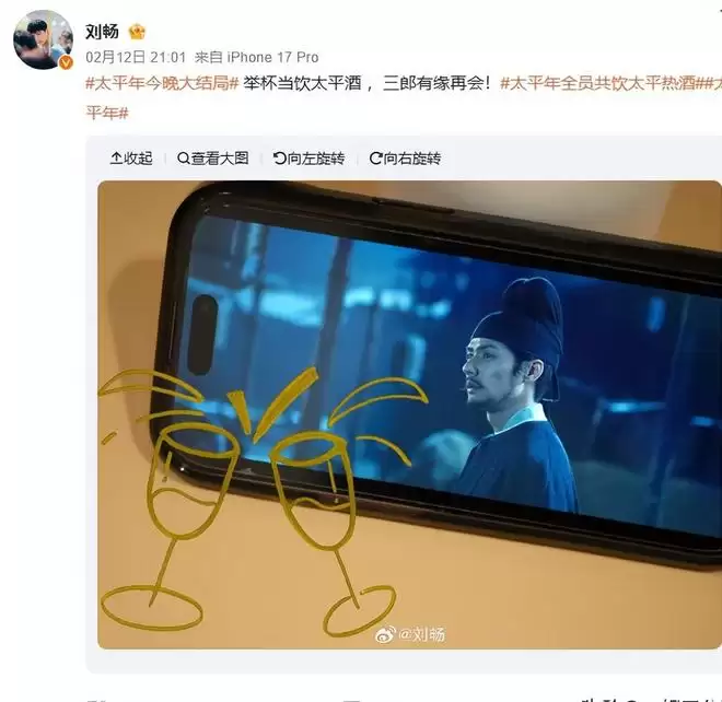 为了契合剧情中的“太平酒”,《太平年》在大结局之后,也是向演员们发起了一个挑战,大家一起共饮太平热酒。