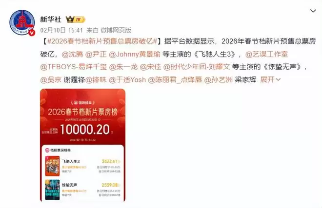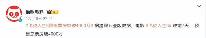 第二个喜讯更让全网沸腾——他参演的《飞驰人生3》,春节档预售票房直接突破4000万。