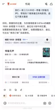 千问大免单再续3天,邀你体验AI购买电影票与门票