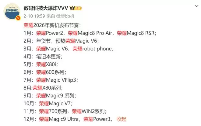 荣耀2026年新品展望:10余款新机蓄势待发