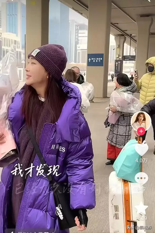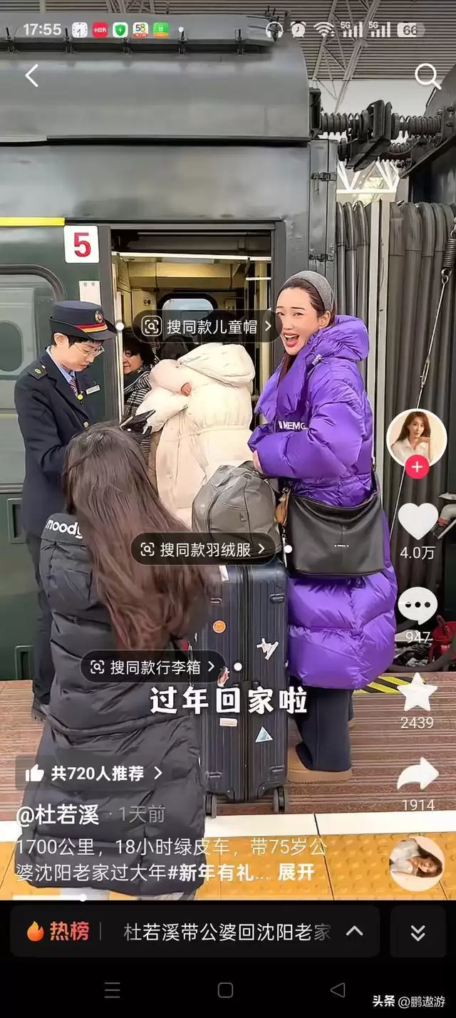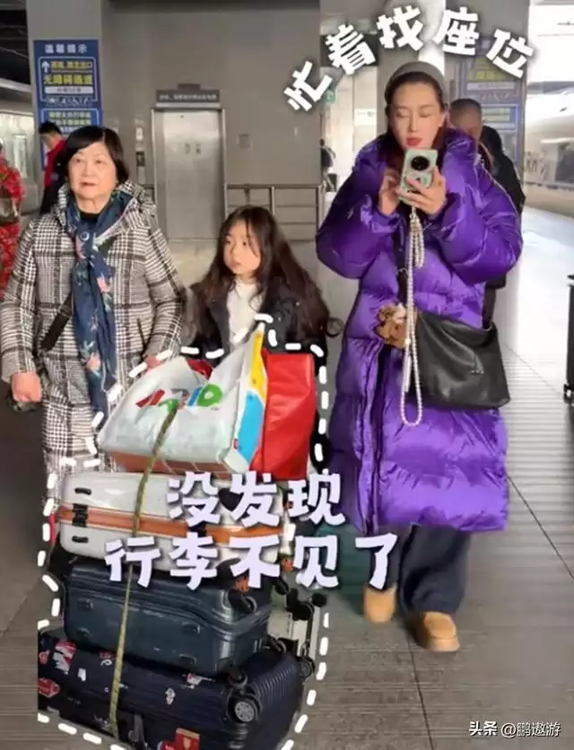 在摩肩接踵的人群中,演员杜若溪带着公婆和孩子也踏上了返乡的旅程。
