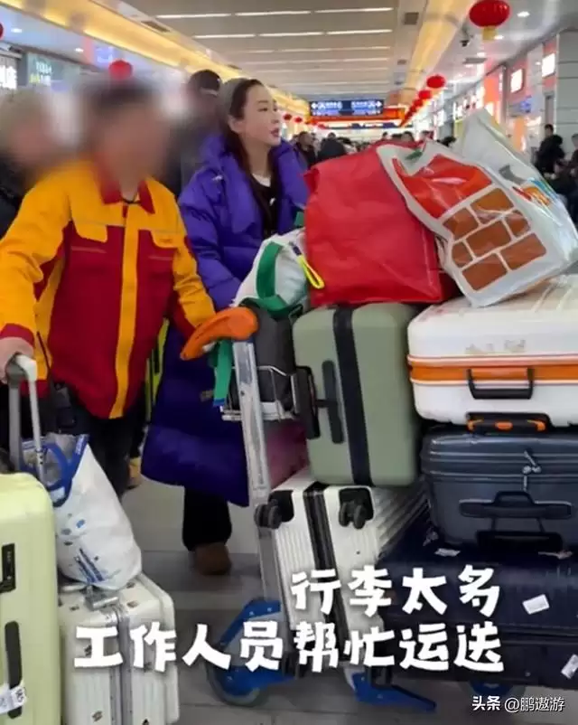 七八件大行李更是巨大的负担,她不得不求助车站的“小红帽”服务,请工作人员帮忙运送。