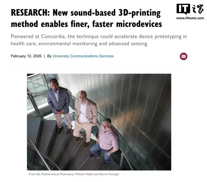 2月14日,IT之家发布消息称,加拿大康考迪亚大学于当地时间2月12日宣布,在微制造领域实现重要突破——成功研发出“近场声打印”(PSP)技术。相关研究成果已发表于《微系统与纳米工程》期刊。该技术利用聚焦超声波直接固化液态聚合物,打印精度相比传统声学打印方案提升近十倍。