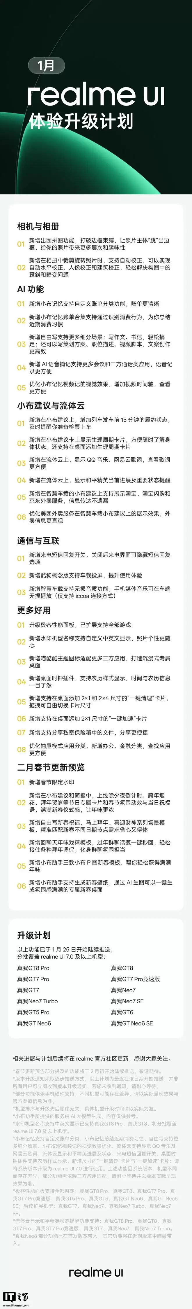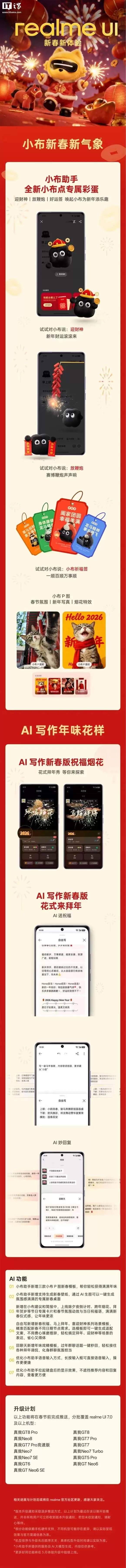 IT之家注意到,在今年1月的realmeUI一月体验升级计划中,真我手机最新版便预告了二月春节更新内容:
