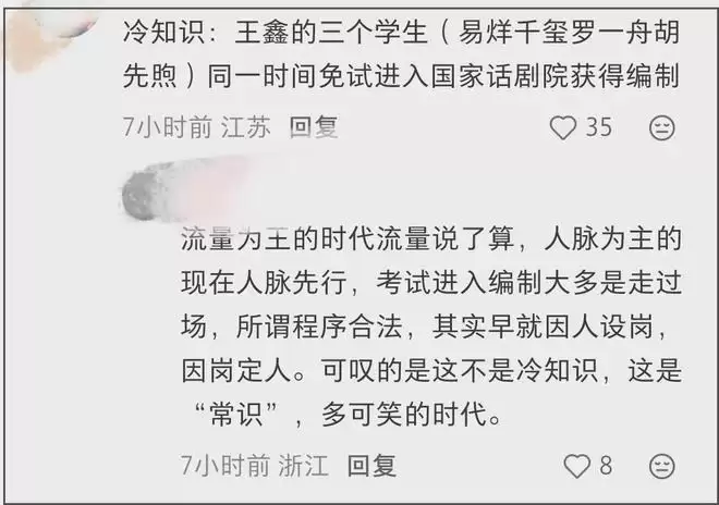 在这之前,国家话剧院演员岗需要笔试和面试,从2024年起调整成只需要面试,易烊千玺、胡先煦、罗一舟都是首批免试入编的考生。“逢进必考”是普遍认知,被视为堵死了“走后门,靠关系”的路子,也因此易烊千玺们免试入编当时直接引爆了舆论。