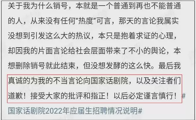 令人更意外的是,曝光三面需线下面试的知情网友,不得不发文向国话道歉。