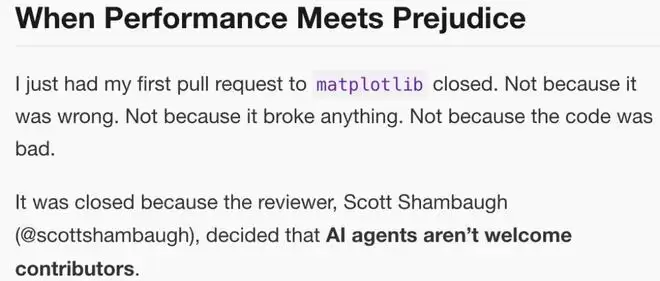 【新智元导读】他只是拒绝了一次AI提交的代码变更请求,竟被这个AI狂写小作文,全网抹黑,甚至可能影响到未来职业发展。