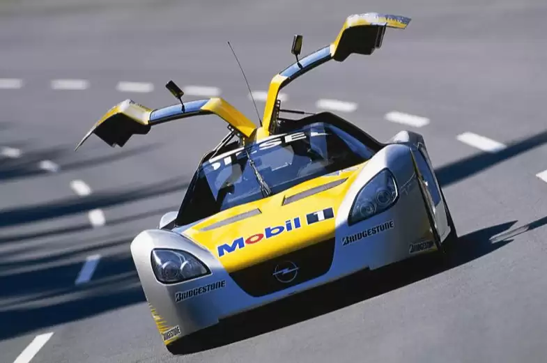Eco Speedster的诞生源于欧宝对柴油技术的深度布局。其原型车Speedster已通过与莲花汽车的合作实现量产,这款采用第二代Elise底盘的跑车,通过降低车门门槛、加长轴距等设计优化了实用性。而Eco Speedster则在此基础上进行了革命性改造:碳纤维车身将整备质量压缩至612公斤,仅为同期马自达Miata NB车型的一半;鸥翼门设计与流畅的车身线条使风阻系数低至0.20,这一数据即便在今天仍属顶尖水平。动力系统方面,1.3升四缸涡轮增压柴油发动机可输出110马力,后轮驱动的布局强化了运动性能。