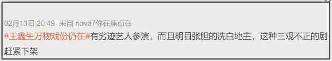如今,王鑫投案,成为了板上钉钉的劣迹艺人,《生万物》自然也受到了不小的影响。王鑫投案的消息一经传出,网友们就呼吁下架《生万物》,不仅指出该剧有劣迹艺人参演,还对该剧传递的三观产生质疑,认为其明目张胆洗白地主。一时之间,《生万物》成为了“众矢之的”。