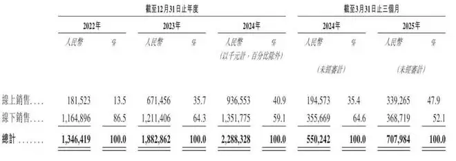 从销售渠道分析,同期来自线上销售的营收为3.39亿元,占总营收的47.9%;线下销售收入为3.69亿元,占比为52.1%。