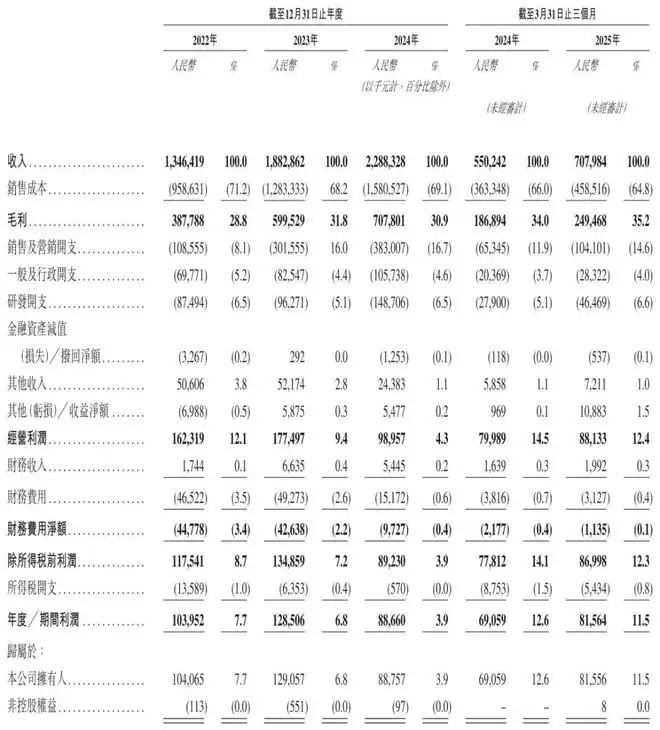 在盈利能力方面,2025年前三个月的经营利润为8813万元,经营利润率达到12.4%;期内利润为8156万元,期内利润率为11.5%。