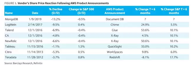 答案是否定的。据巴克莱统计,没有一家成熟的软件公司因为AWS的竞争而破产(终值归零)。