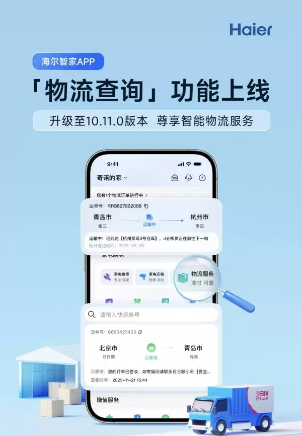 交付完成才是服务的开始。海尔智家APP通过数字化赋能,实现了物流全流程的可视化管理,重塑了服务链条的"最后一公里"。这既是对用户时间成本的充分尊重,也是智慧家庭全流程服务体系落地的坚实一步。