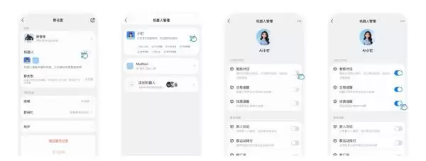 用户只需在新创建的钉钉“内部群”中@AI小钉,就能通过自然语言对话实现多种操作,包括查看聊天记录、管理任务清单、调整群组设置等。现有钉钉“内部群”的群主和管理员,可以在群设置中添加“AI小钉”作为群聊机器人,一键开启智能助手功能。
