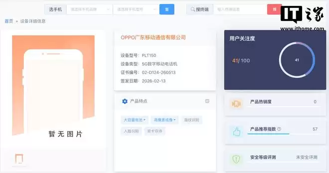 2月15日,据IT之家消息,一款型号为PLT150的OPPO新机日前现身工信部电信设备终端网,设备类型被标注为“5G数字移动电话机”。