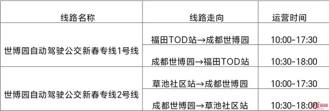 成都世博园新春自动驾驶专线初一至初七运营