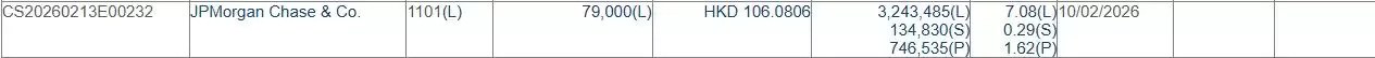 根据联交所最新权益披露资料,截至2026年2月10日,豪威集团(00501.HK)获JPMorgan Chase & Co.以每股均价106.0806港元增持好仓7.9万股,涉及资金约838.04万港元。
