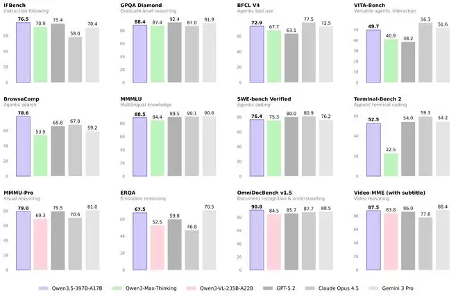 图示:阿里开源千问Qwen3.5-Plus,性能媲美Gemini 3 Pro