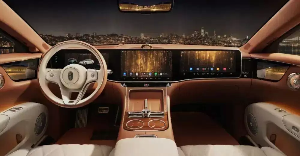 内饰配置堪称同级标杆,三联屏与HUD显示系统构建数字化驾驶舱,二排配备星空顶、投影幕布及可升降滑轨。中央超豪华中岛台集成多项创新功能:压缩机冰箱支持-6℃至50℃宽温域调节,指纹密码箱采用生物识别技术,无线充电区支持多设备同时充电。声学系统搭载独立音区技术,通过声学隧道降噪头枕实现前后排声音隔离,配合升降式空间屏风营造私密空间。