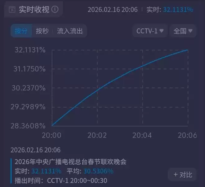 不到3分钟,马年春晚收视就突破了30%,观众纷纷开机,收视一路飙升;