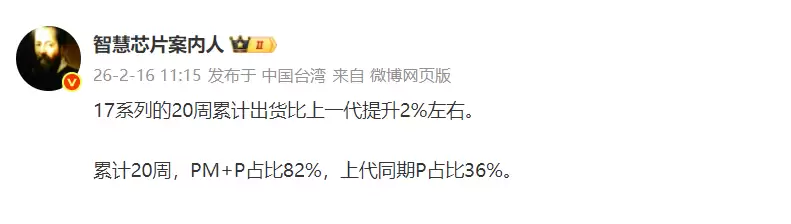 行业人士“智慧芯片案内人”的数据显示,小米17系列在发售20周后,累计出货量相比上一代小米15系列提升了约2%。更重要的是,在这20周的销量里,小米17 Pro Max和小米17 Pro的合计占比高达82%,要知道上一代小米15 Pro的占比仅为36%。定位更高、售价更贵的小米17 Pro系列反而卖得更好,这才是小米17系列与小米15系列最本质的区别所在。因为小米15系列是以标准版为基本盘,而小米17系列却是以售价最高的小米17 Pro Max为基本盘。在平均售价高出上一代近2000元的前提下,销量还能实现同比增长,这才是小米17系列成功的关键。