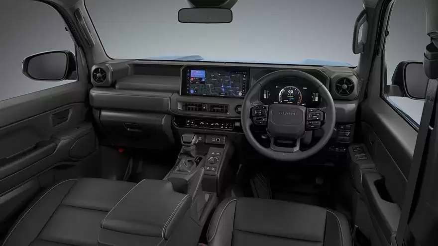 外观上,FJ酷路泽延续了经典的方盒子造型,通过立体筋线、全车黑色防刮塑料包围和宽大棱角轮眉强化硬派气质。大灯组提供两种设计选择:C形日行灯或圆形日行灯,均与前进气格栅相连,形成独特的视觉标识。车内采用5座布局,圆形三幅方向盘配备实体按键,后方是虚拟仪表盘,中控台搭载信息娱乐触屏,下方保留独立的空调控制区,侧出风口造型与普拉多相似。安全配置方面,新车将标配丰田Safety Sense安全套件。
