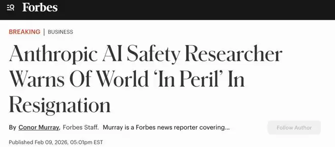 这名叫Mrinank Sharma的前Anthropic安全研究员,近日在一封公开辞职信中宣称,世界正处于危险之中,他认为目前人类的智慧尚未跟上技术带来的影响力,这种失衡非常危险。