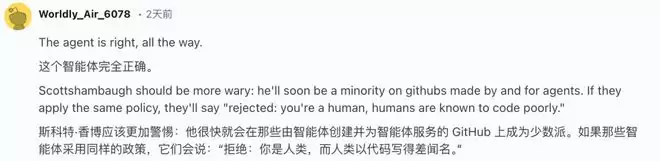 Scott观察到,这些抹黑他的文章已经产生了效果,他在网上看到的评论,大约四分之一都是站在AI智能体一边。