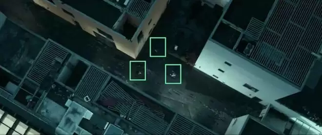 另外值得一提的,是片中运用大量无人机和俯拍镜头,模拟了监控摄像头的视角。将监控、监听等数字化高科技手段纳入谍战,是当代题材不可回避的一个难点。它仿佛让我方处于全知全能的境地,反派掌握什么手段才能对抗?这同样让视听处理变得更难。