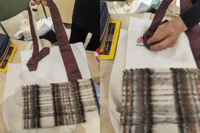 改造包——用领带巧妙的遮挡环保袋上的企业LOGO。 李蕾 摄影