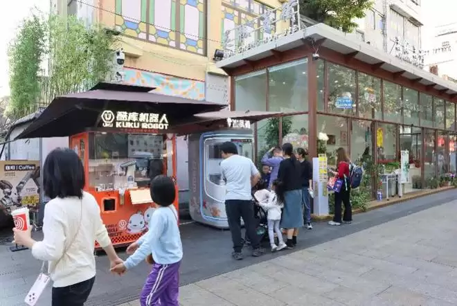 “哇,机器人在做咖啡!”在广州北京路的咖啡机器人吸引了往来游客们的目光。每当有消费者扫码下单,机械臂开始运作,路过的人们纷纷拿出手机拍视频。在一旁的冰淇淋机器人周边则总是围着一群看得津津有味的小朋友。