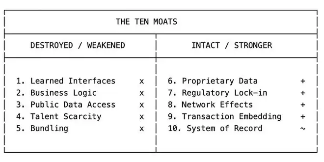 让垂直软件具备防御性的十大护城河,以及LLM对每一条护城河的影响